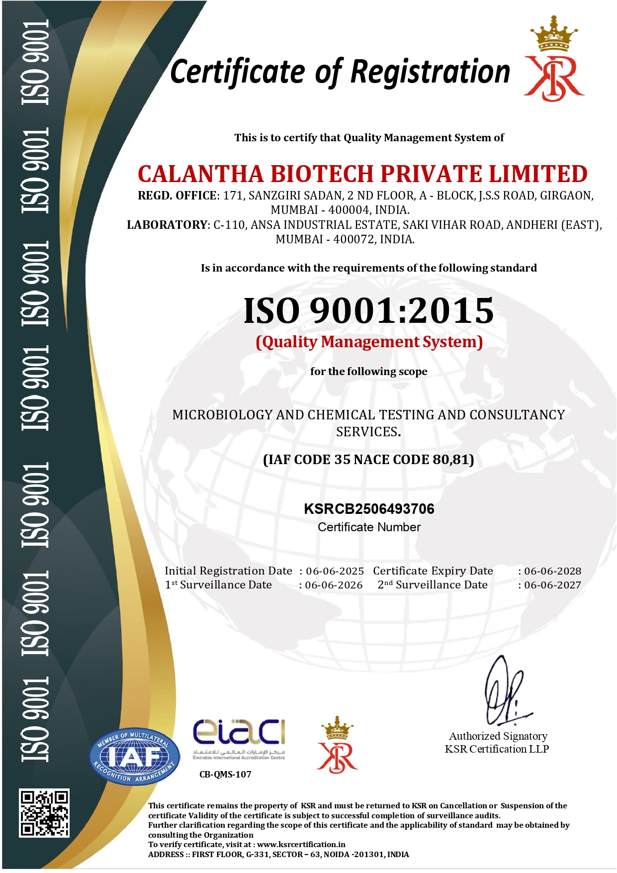 Calantha Biotech Pvt. Ltd. (ISO 9001:2015 certified lab)
